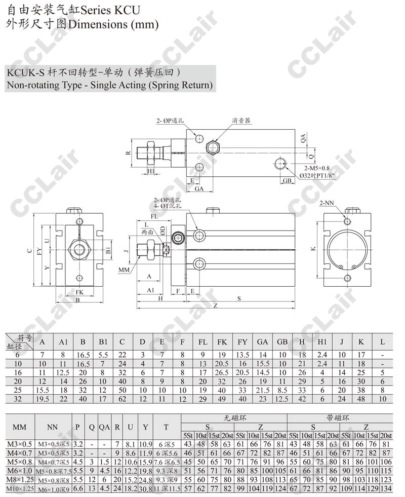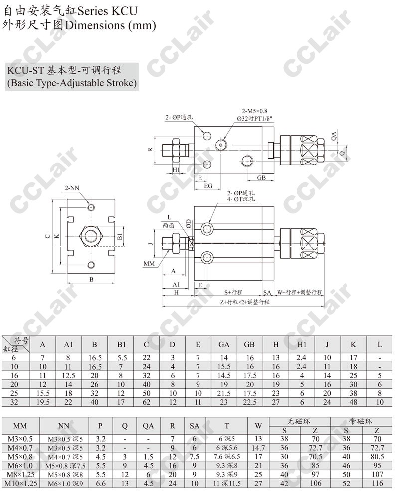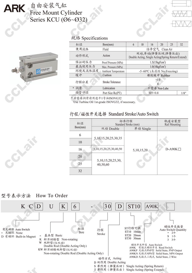 KCUK,KCUW,KCUKW,KCUK20-60,KCUKW16-50,KCUW20-5,KCUKW20-40,KCUW16-10,ARK自由安裝氣缸