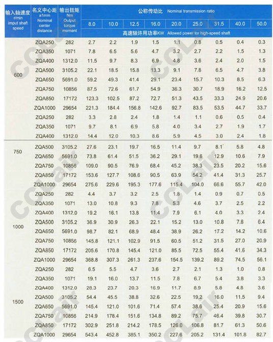 ZQA250,ZQA350,ZQA400,ZQA500,ZQA650,ZQA750,ZQA850,ZQA1000,中硬齒面圓柱齒輪減速器 |