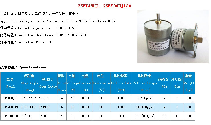 25BY48HJ21,25BY48HJ49,26BY04HJ180,精密減速步進(jìn)電機(jī)