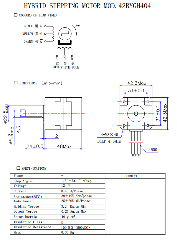 詳細(xì)信息 42BYGH010,42BYGH011,42BYGH023,42BYGH102Q,42BYGM402,混合式步進(jìn)電機(jī)