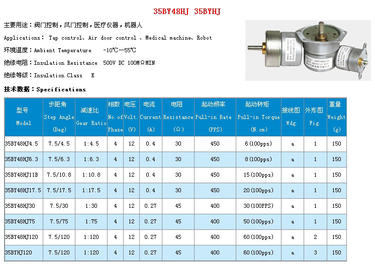 詳細信息 35BY48HJ4.5,35BY48HJ6.3,35BY48HJ11B,35BY48HJ17.5,精密減速步進電機
