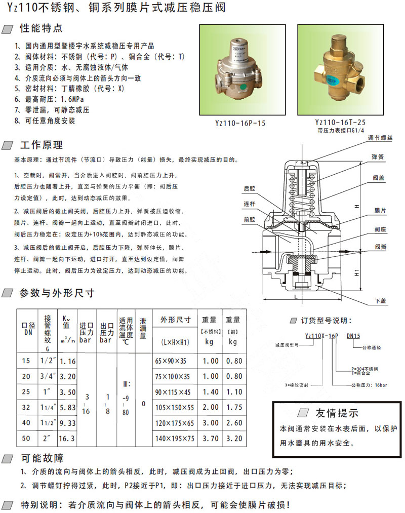 YZ110X-16P-DN15,YZ110X-16P-DN20,YZ110X-16P-DN25,YZ110X-16P-DN32,膜片式減壓穩(wěn)壓閥