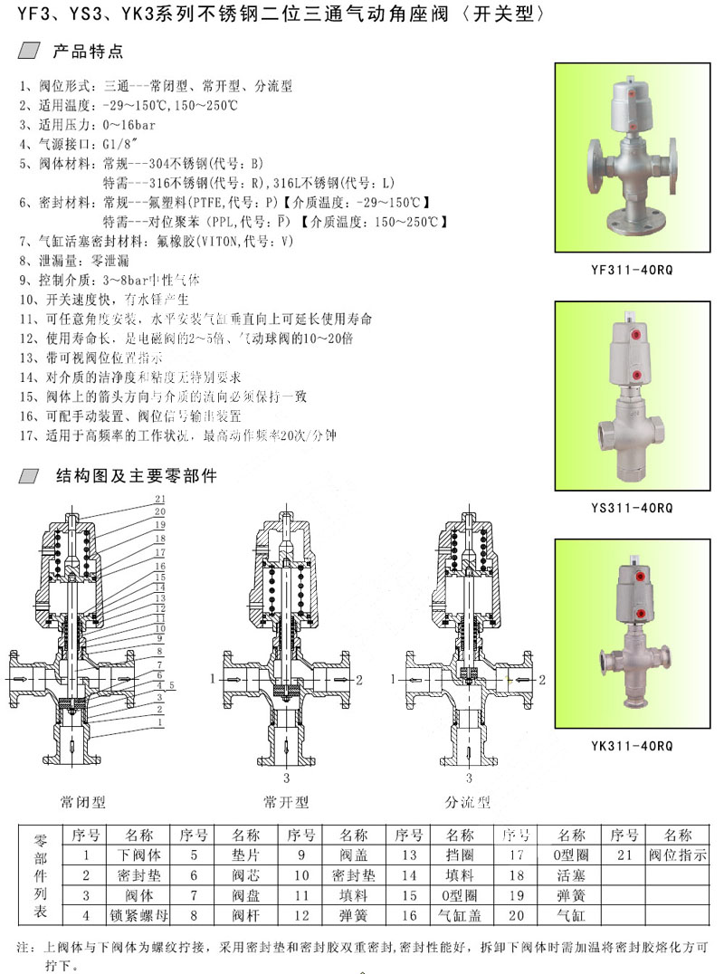 詳細(xì)信息 YF3-15,YF3-20,YS3-25,YS3-32,YK3-32,YK3-40,氣動(dòng)角座閥