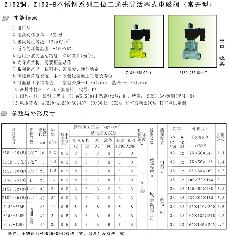 詳細信息 Z152-10,Z152-15,Z152-20,Z152-25,Z152-32,Z152-40,先導(dǎo)活塞式電磁閥