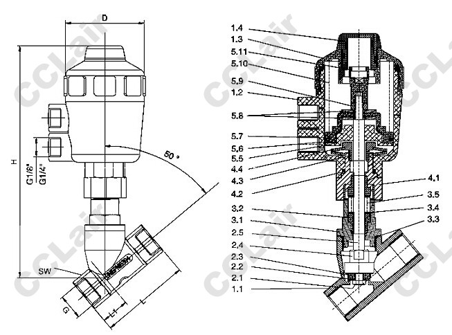 | 1.1 閥體 | 3.1 螺旋連接件 | 5.5 鎖緊螺母 |