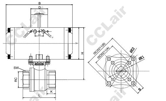 | DN | RC | L | K | SW | H | T | D | B | 不銹鋼球閥訂貨號(hào) |