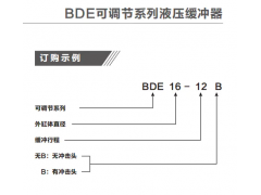 全系列分為小型可調(diào)節(jié)型和中大型可調(diào)節(jié)型兩大類,其中,BDE36M以下的型號為小型可調(diào)節(jié)型,外缸體為全螺牙外螺紋;BDE42以上的型號為中大型可調(diào)節(jié)型,外缸體兩端有外螺紋,該類型緩沖器兩端的連接件,可選擇U型夾的安裝方式。