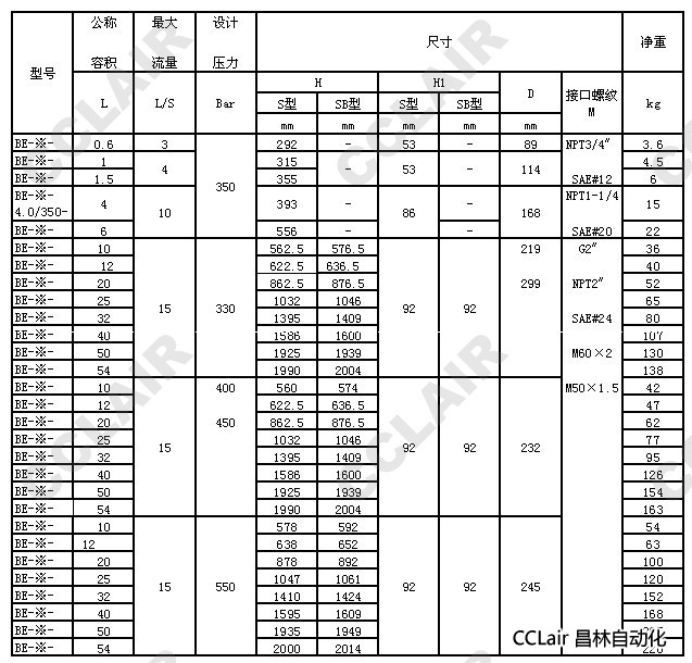 ①名稱代號(hào):歐標(biāo)囊式蓄能器
