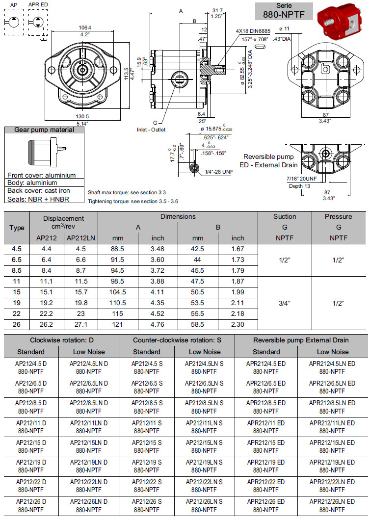 AP212/4.5LN-ED-880-NPTF,AP212/6.5LN-ED-880-NPTF,AP212/8.5LN-ED-880-NPTF,AP212/11LN-ED-880-NPTF,