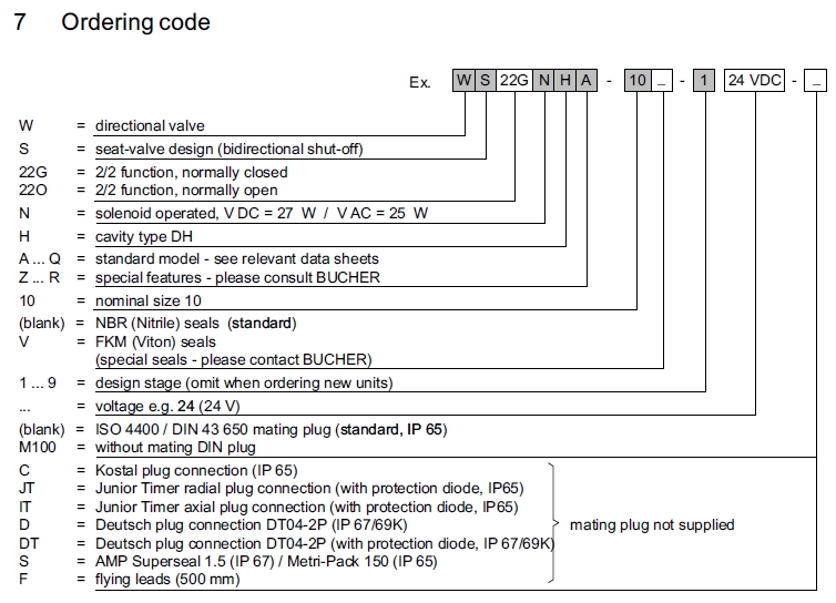 詳細(xì)信息 WS22GNHA-10-1,WS22ONHA-10-1,WS22GNHA-10V-1,WS22ONHA-10V-1,Bucher方向閥