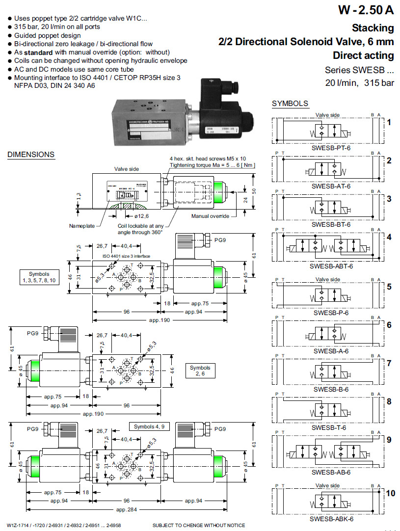 詳細(xì)信息 SWESB-P-6-24VDC,SWESB-A-6-24VDC,SWESB-B-6-24VDC,SWESB-PT-6V-24VDC,Bucher電磁閥
