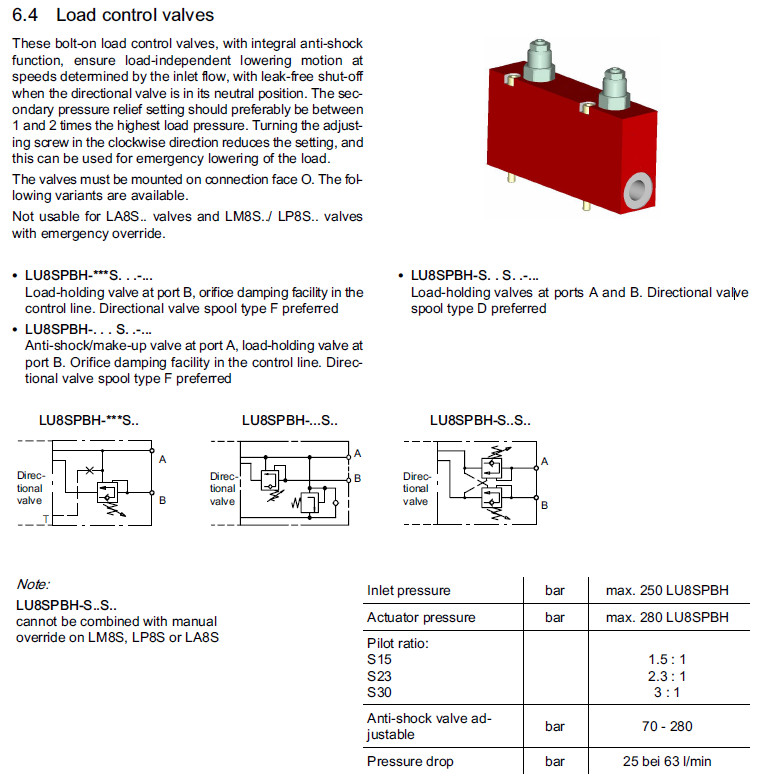 詳細(xì)信息 LU8SPBH-S15S15-0M18,LU8SPBH-S23S15-0M18,LU8SPBH-S30S15-0M18,Bucher負(fù)荷控制閥