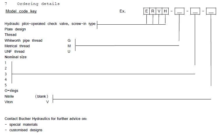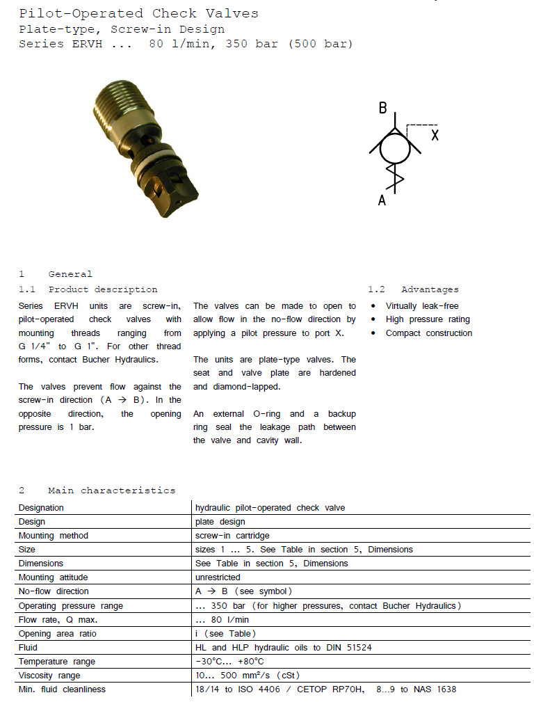 詳細信息 ERVH-G-1,ERVH-G-2,ERVH-G-3,ERVH-M-3,ERVH-M-4,ERVH-U-4,ERVH-U-5,Bucher先導(dǎo)式單向閥