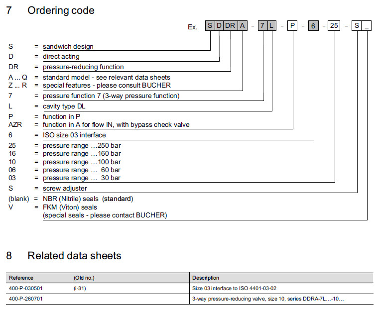 SDDRA-7L-P-6-25,SDDRA-7L-P-6-16,SDDRA-7L-P-6-06,SDDRA-7L-P-6-10,Bucher減壓閥