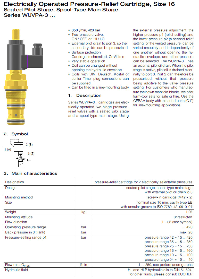 詳細(xì)信息 WUVPA-3BO-04-16-1,WUVPA-3BO-10-16-1,WUVPA-3BO-25-16-1,Bucher溢流閥