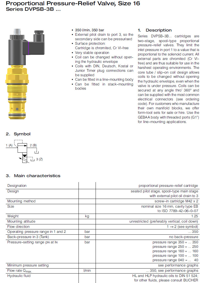詳細(xì)信息 DVPSB-3B-040-16-1,DVPSB-3B-100-16-1,DVPSB-3B-250-16-1,DVPSB-3B-350-16-1,Bucher比例壓力溢流閥