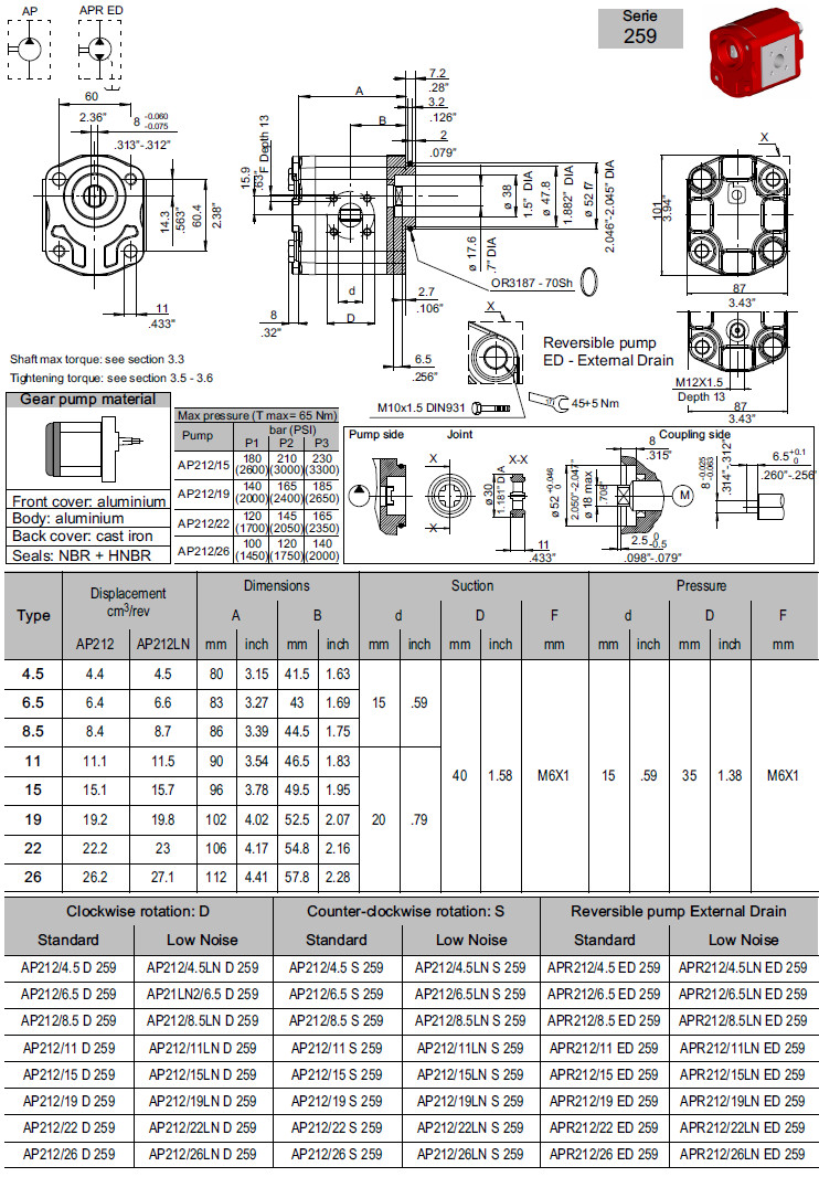 AP212/4.5-D-259,AP212/6.5-D-259,AP212/8.5-D-259,AP212/11-D-259,