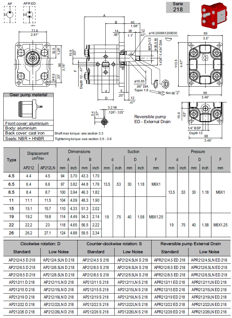 AP212/4.5-S237,Bucher,AP212/6.5-S237,AP212/8.5-S237,AP212/11-S237,