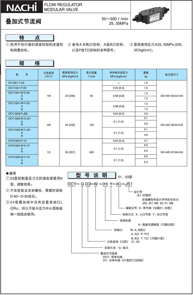 OY-G01,OCY-G03,OYH-G04,OY-G01-T-20,OCY-G03-W-X-J51,OYH-G04-B-Y-10,NACHI疊加式節(jié)流閥