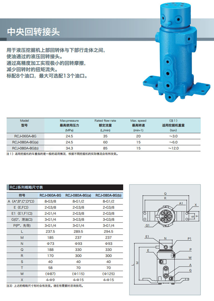 詳細信息 RCJ-060A-8G,RCJ-080A-8G(a),RCJ-080A-8G(b),NACHI中央回轉(zhuǎn)接頭