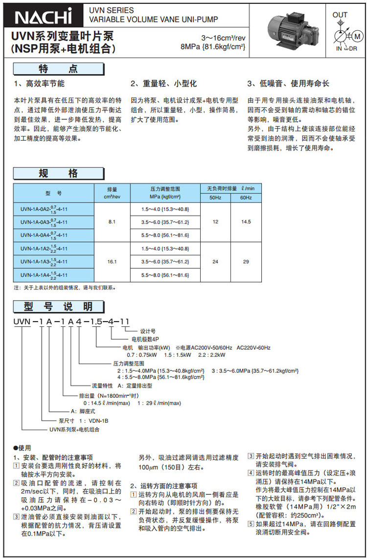 詳細(xì)信息 UVN-1A-0A2,UVN-1A-0A3,UVN-1A-0A4,UVN-1A-1A2,UVN-1A-1A3,UVN-1A-1A4,NACHI泵+電機(jī)組合