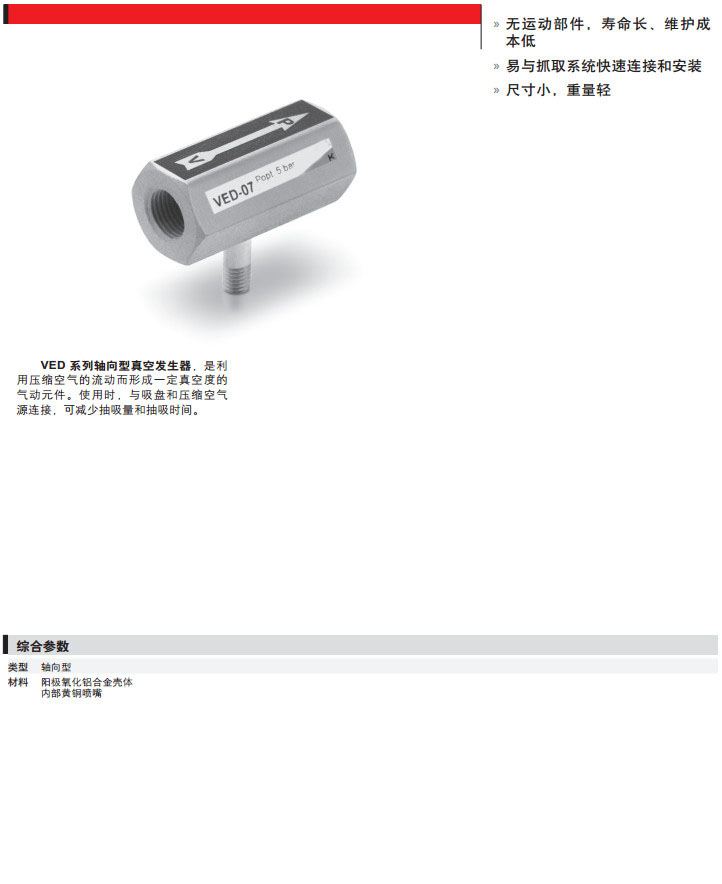 產(chǎn)品: 瀏覽次數(shù):748VED-07,VED-09,camozzi軸向型真空發(fā)生器