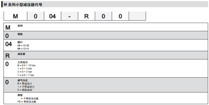 M008-R00,M008-R21,M004-R05,M004-R70,M008-R11,camozzi小型減壓器