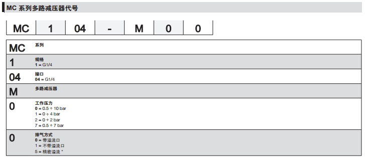 詳細(xì)信息 MC104-M00,MC104-M01,MC104-M11,MC104-M25,MC104-M70,camozzi多路減壓器