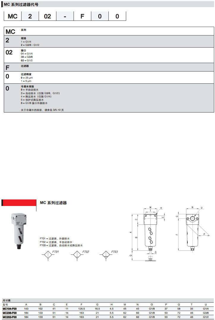 MC104-F00,MC138-F03,MC102-F05,MC204-F04,MC238-F15,MC202-F08,camozzi過濾器