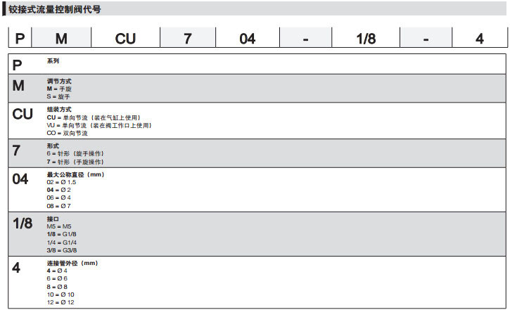 PMCU602-M5-4,PMCU702-1/8-6,PSCU602-1/8-4,PSVU706-1/8-8,camozzi流量控制閥