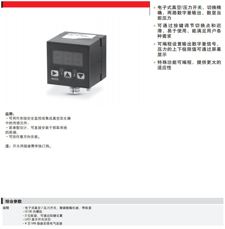 您當(dāng)前的位置:首頁 » 供應(yīng)產(chǎn)品 » SWC-V00-P,SWC-P10-P,camozzi真空開關(guān)