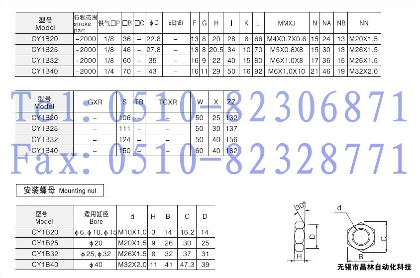 CY1B40-900,CY1B40-1000,CY1B50-50,CY1B50-100,CY1B50-150,CY1B50-200,磁耦式無桿氣缸