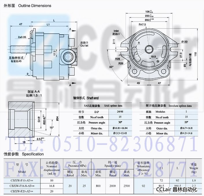?、?軸伸形式 Shaft end X: 漸開(kāi)線花鍵 Involute spline Φ: SAE花鍵 SAE spline