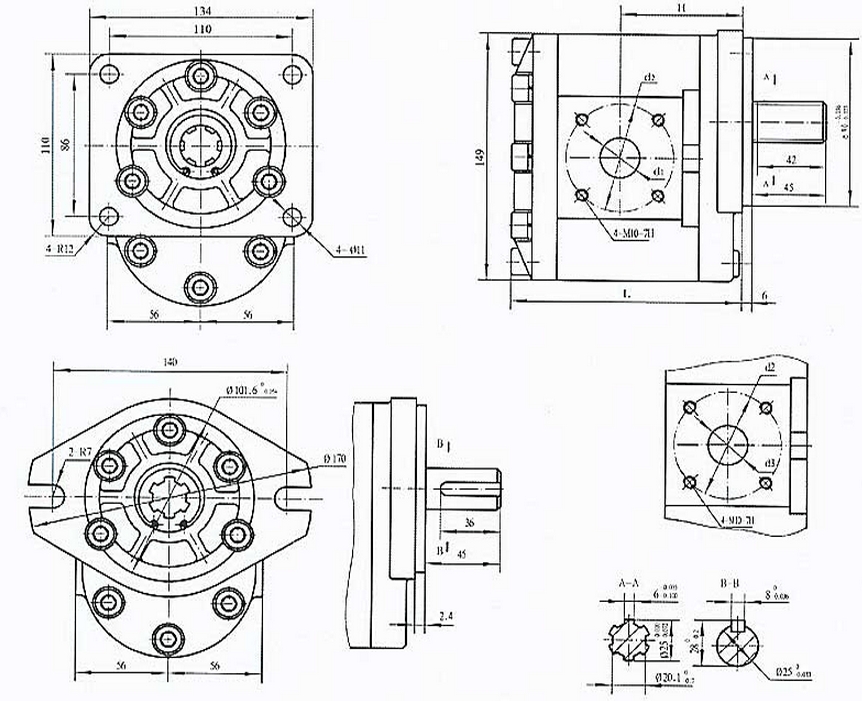 - 油口:側(cè)面法蘭軸申:矩形花鍵6-25*20*6 圓柱形