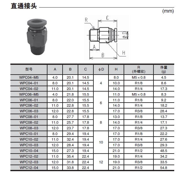 詳細(xì)信息 WPC04-M5,WPC04-01,WPC04-02,WPC06-M5,WPC06-01,WPC06-02,WPC06-03,WPC08-01,直通接頭