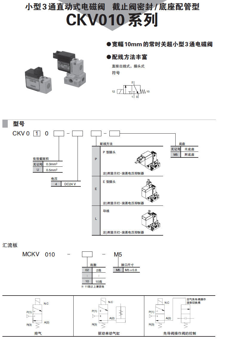 詳細信息 CKV010-4P,CKV010-4E,CKV010-4L,CKV010U-4P,CKV010U-4E,CKV010U-4L,小型3通直動式電磁閥