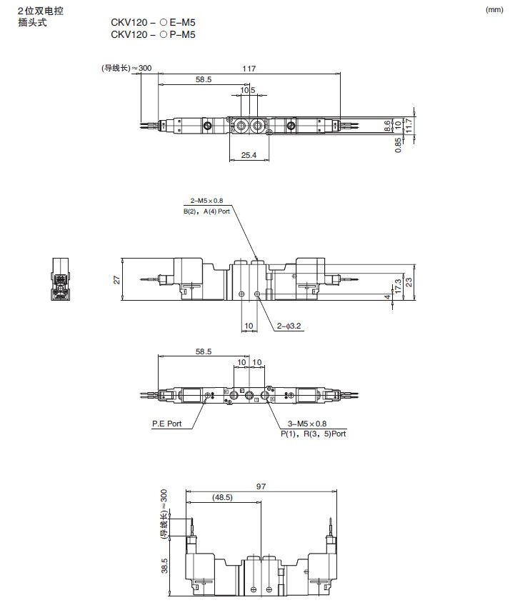 CKV110-B-1E,CKV120-B-2E,CKV130-B-4E,CKV140-B-4P,CKV150-B-1E,5通先導(dǎo)式電磁閥
