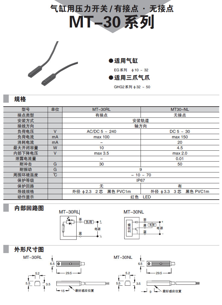 您當前的位置:首頁 » 產(chǎn)品&解決方案 » MT-30RL,MT30-NL,氣缸用壓力開關