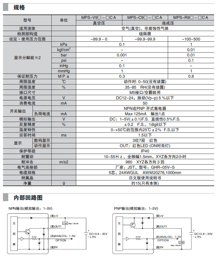 MPS-V9C-NCA,MPS-R9C-NCA,MPS-C9C-NCA,MPS-V9M-NCA,MPS-R9M-NCA,MPS-C9M-NCA,壓力傳感器