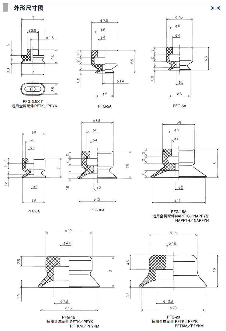 PFG-1.5A,PFG-2A,PFG-2*4A,PFG-3.5A,PFG-3.5*7,PFG-5A,PFG-6A,PFG-8A,PFG-15,吸盤