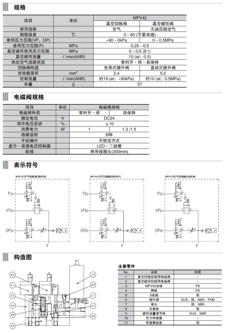 MPV42-S-V9,MPV42-S-10,MPV42-S-ZZ,MPV42-M-V9,MPV42-M-10,MPV42-M-ZZ,真空切換閥組合