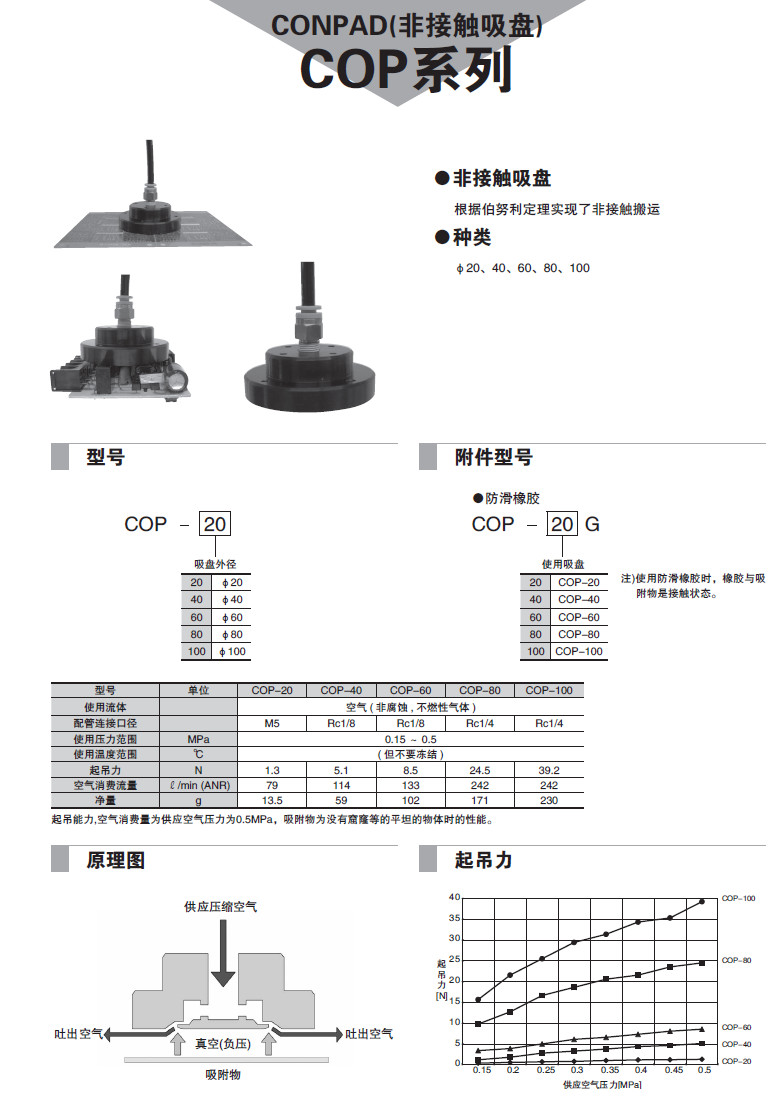 詳細(xì)信息 COP-20,COP-40,COP-60,COP-80,COP-100,非接觸吸盤