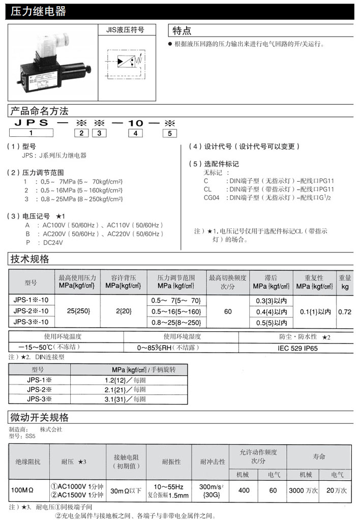 產(chǎn)品: 瀏覽次數(shù):681JPS-1A-10,JPS-1B-10,JPS-1P-10,JPS-2A-10,JPS-2B-10,JPS-2P-10,JPS-3A-10,JPS-3B-10,JPS-3P-10,DAIKIN壓力繼電