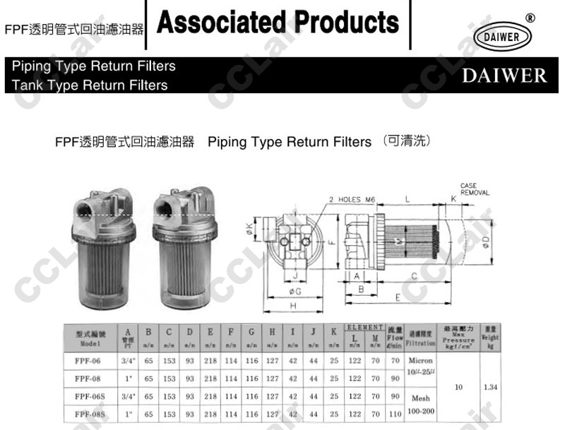 FPF-06,FPF-08,FPF-06S,FPF-08S,DAIWER透明管式回油濾油器