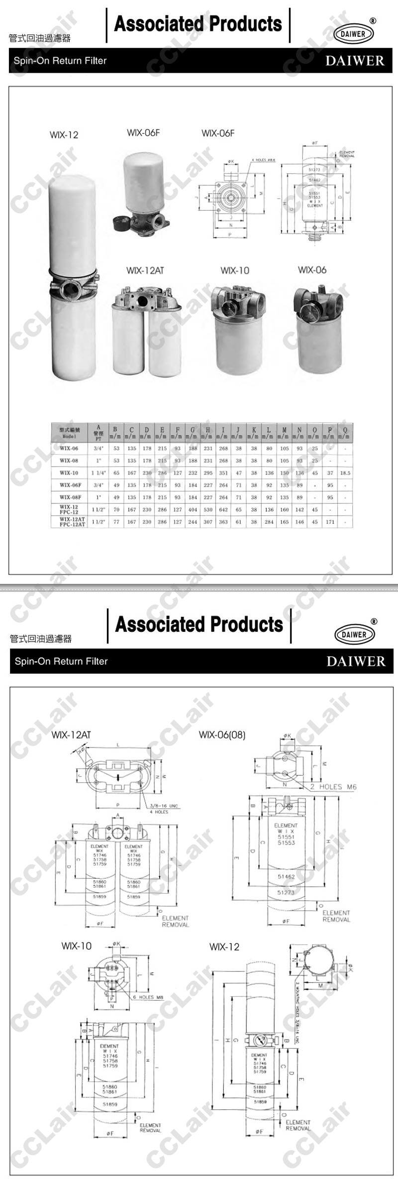 WIX-12AT,FPC-12AT,WIX-06,WIX-08,WIX-06F,WIX-08F,WIX-10,WIX-12,FPC-12,DAIWER管式回油過濾器