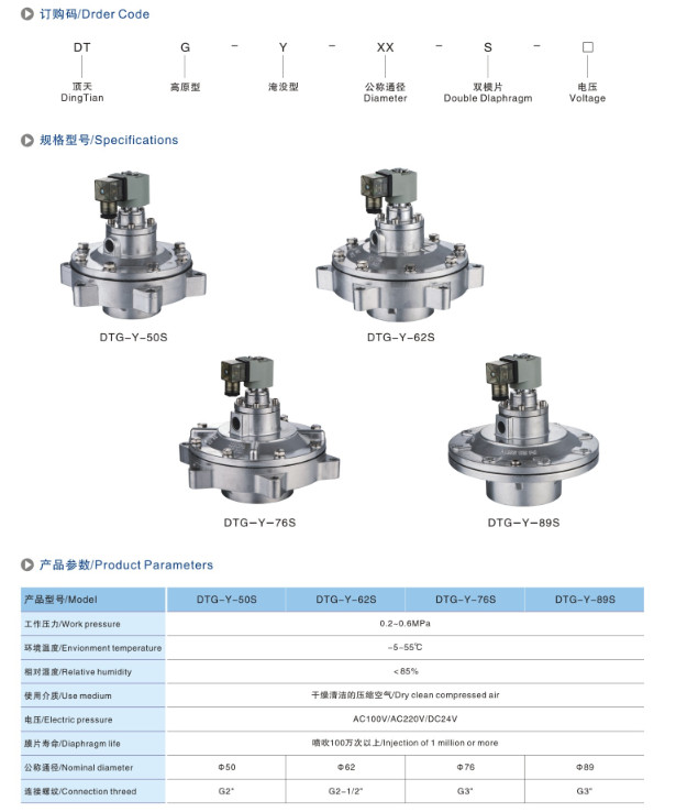 詳細(xì)信息 DTG-Y-50S,DTG-Y-62S,DTG-Y-76S,DTG-Y-89S,淹沒(méi)式脈沖閥 DTG-Y-50S,DTG-Y-62S,DTG-Y-76S,DTG-Y-89S