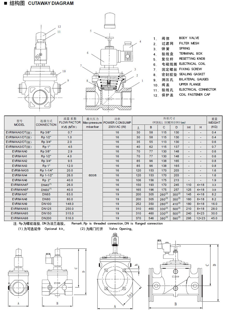 EVRM-NA0/OT,EVRM-NA1/OT,EVRM-NA2/OT,EVRM-NA3/OT,EVRM-NA4,elektrogas燃氣緊急切斷閥