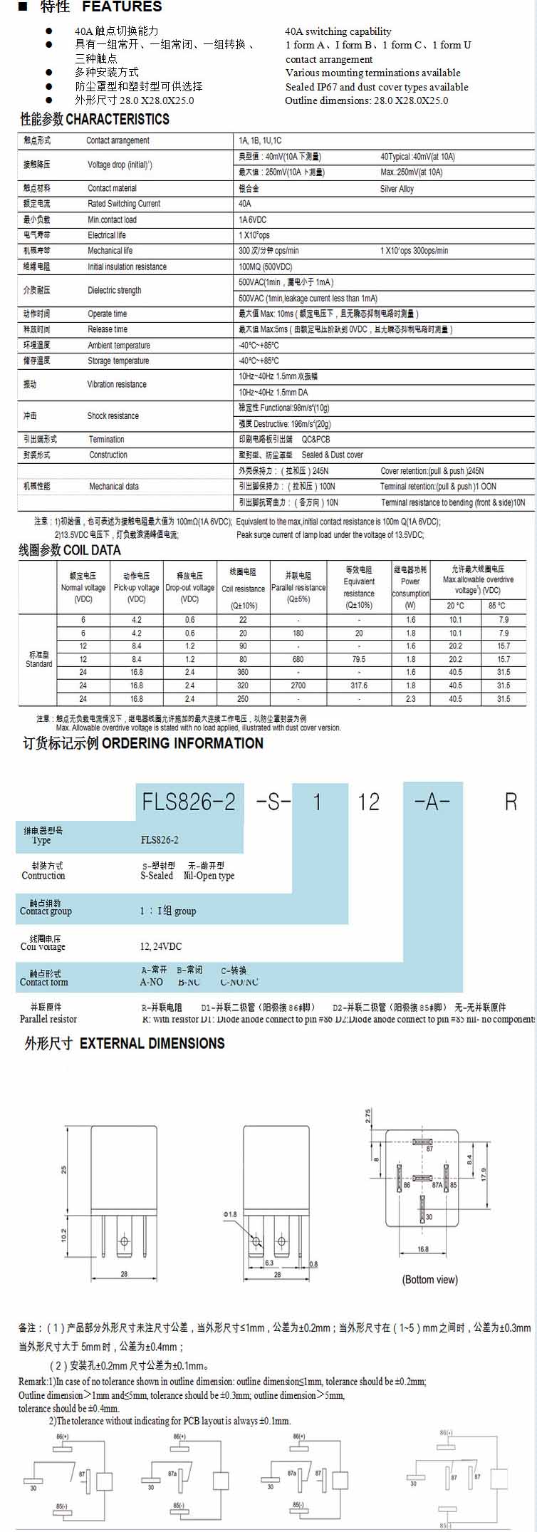 FLS826-2,汽車繼電器