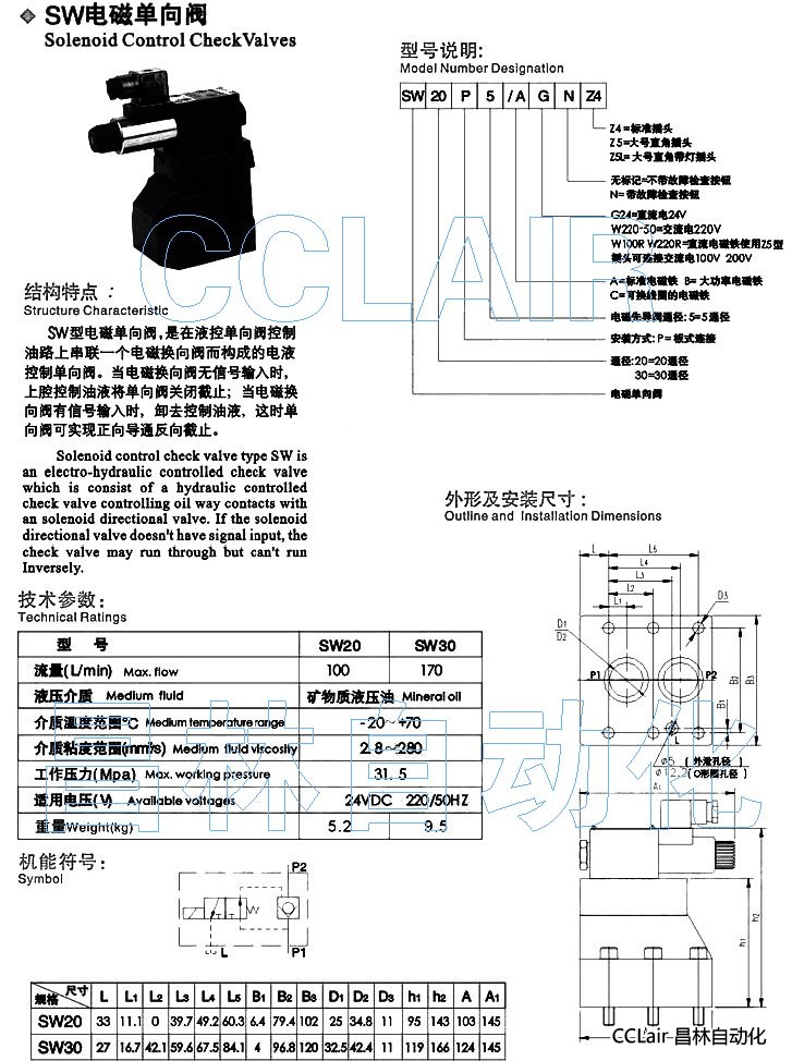 詳細信息 SW30P5/AW220RNZ5L,SW20P5/AW220RZ4,SW20P5/AW220RZ5,電磁單向閥