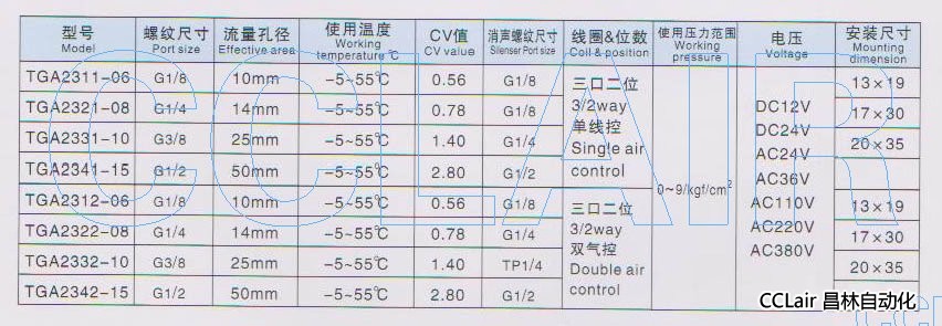 詳細(xì)信息 TGA2311-06,TGA2321-08,TGA2331-10,TG2341-15,氣控閥